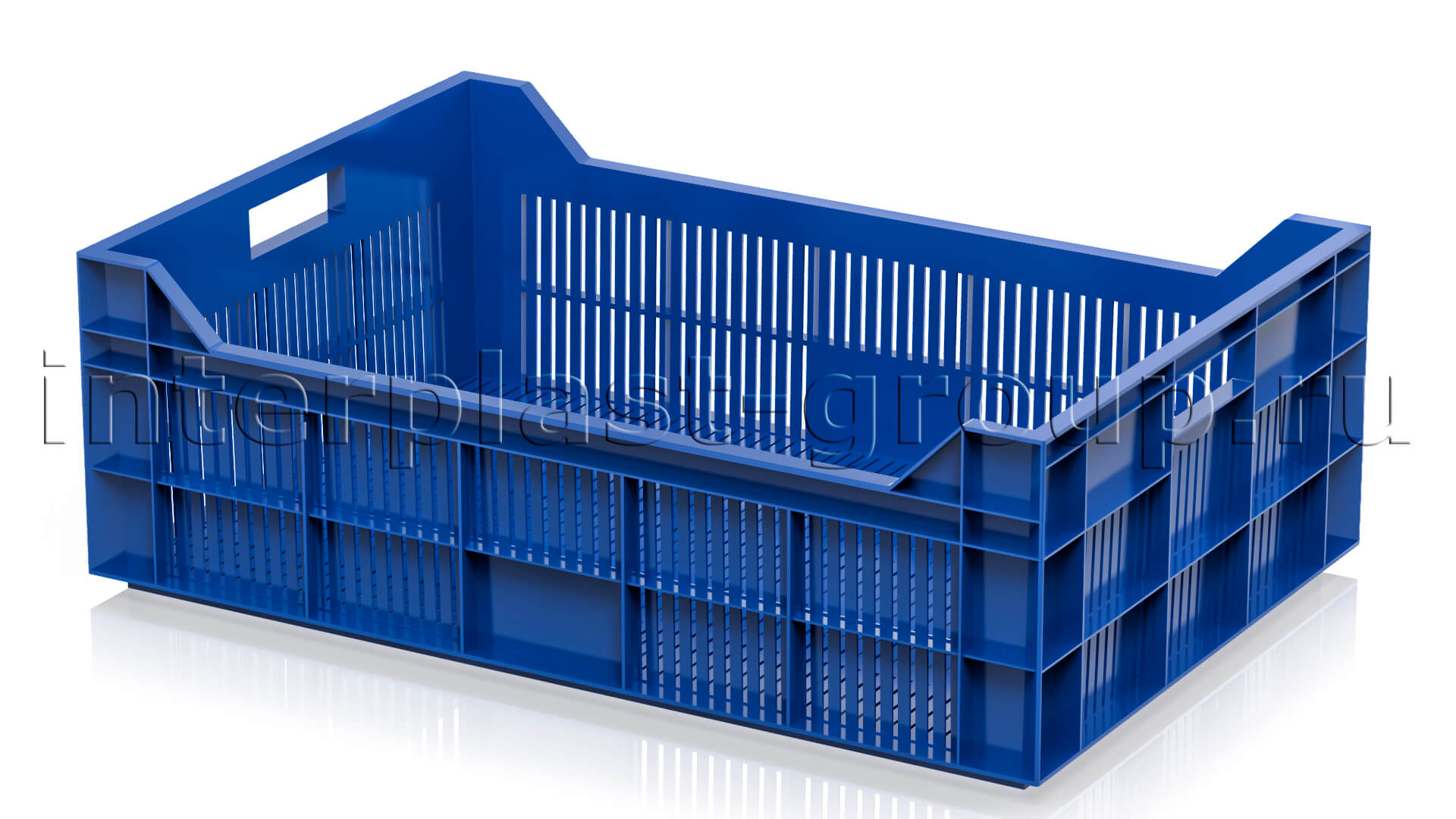 Ящик для овощей, фруктов и ягод, разработан как многофункциональное решение для всевозможных пищевых секторов экономики. Самое обширное решение в пищевой индустрии в качестве обратной тары. Предназначен как для хранения на складах, так и для перевозки овощей, фруктов, ягод, а еще для заморозки мяса, рыбы и полуфабрикатов.